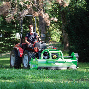 Bi-directional double 3-point mounting, 58” cut width, 96 Y-flails, mid-range 35-55 HP compatibility, adaptable mulching across various terrain types.