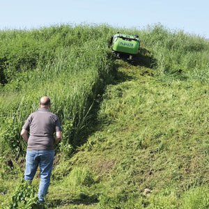 The Peruzzo Hybrid Robofox is a cutting-edge hybrid, remote-controlled flail mower engineered for safety and performance on steep terrain. Blending a Briggs & Stratton engine with electric track motors, it delivers agile, emission-free mobility. It maneuvers across 50° slopes, uses robust Y-flails, and keeps operators safe via remote control and rollover detection. Ideal for tough environments like solar farms, steep banks, and restricted areas.