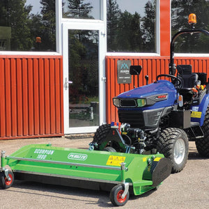 The Peruzzo Scorpion 1400 is a front-mounted flail mower engineered for tractors in the 20-40 HP range. With a working width of 52″, it delivers strong mulching and cutting performance via 88 “Y” blades configuration. Its flexibility shines with multiple PTO speeds, front or triangle hitch mounting, and height adjustability via rear roller and front wheels. Ideal for maintaining roadsides, sports fields, parks, and green areas where both finish and rough cuts are needed.