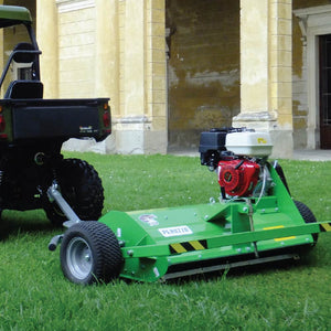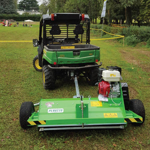 The Peruzzo MOTOFOX1200M-B is a self-propelled rear flail mower for ATVs and quad vehicles designed to excel in mowing grass, small branches, and quick verti-cutting. Featuring a robust Briggs & Stratton gas engine, clever mobility enhancements like a rear roller and transport wheels, and offset cutting via a lateral tow bar, it maximizes reach and finish. Safety and start-up are streamlined with a centrifugal pulley and operator cut-off switch. It’s the ideal compact solution for refined turf maintenance in challenging or uneven terrains.