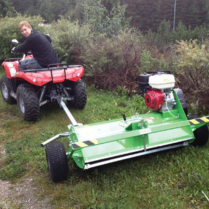 - Side-mounted tow bar enables cutting up to 35” beyond ATV path