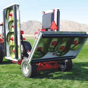 The Progressive TDR22G is a heavy-duty tri-deck roller mower engineered for commercial turf and sod maintenance. With its wide 22′ cutting swath, full-width 6″ rollers, and high-speed blade performance, the TDR22G delivers a clean striped finish and exceptional productivity. The Pro Lift-N-Turn™ system enables turf-friendly maneuverability at headlands, while optional flotation tires and durable construction ensure reliability in all conditions. Designed with maintenance in mind, this mower combines efficiency, durability, and reduced service time for professional turf care operations.